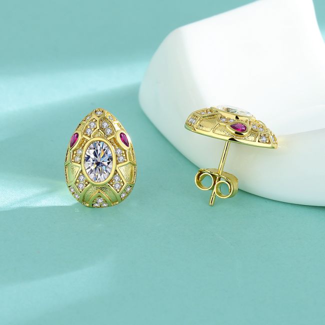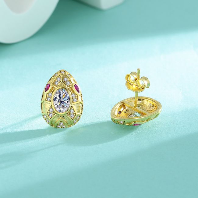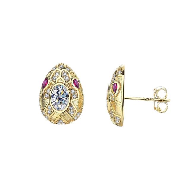 Earrings - 925 Sterling Silver Snake Head Stud Earrings with Moissanite Stone