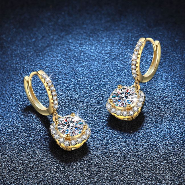 Earrings Classic Cushion Halo Moissanite Drop Earrings in Gold Plated Sterling Silver