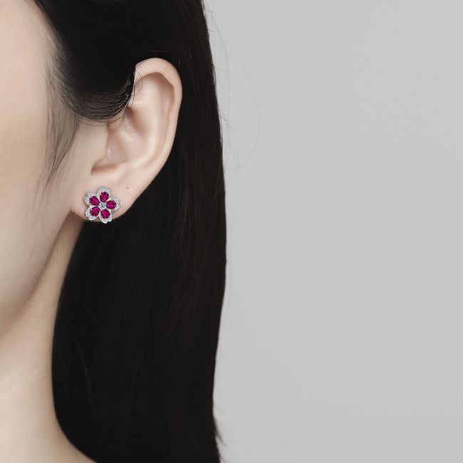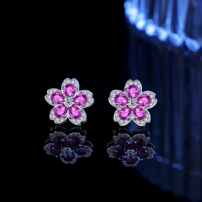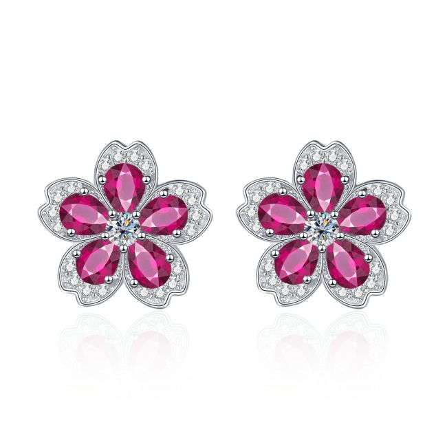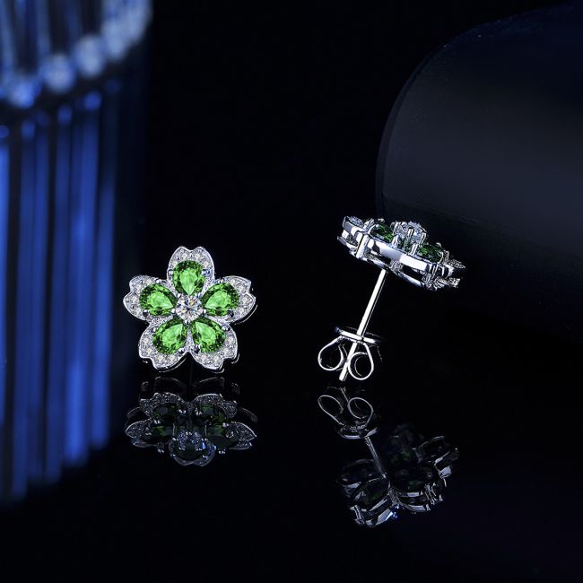 Earrings - Colorful Gemstone Flower Stud Earrings with Sparkling Crystal Accents