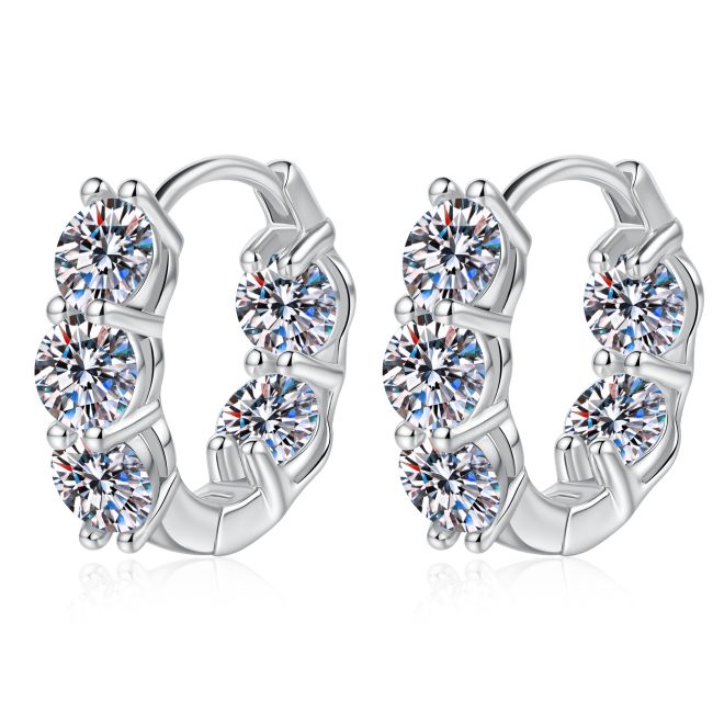 - Design Style: Classic hoop earrings with multiple round-cut moissanite stones set in prong settings along the front face