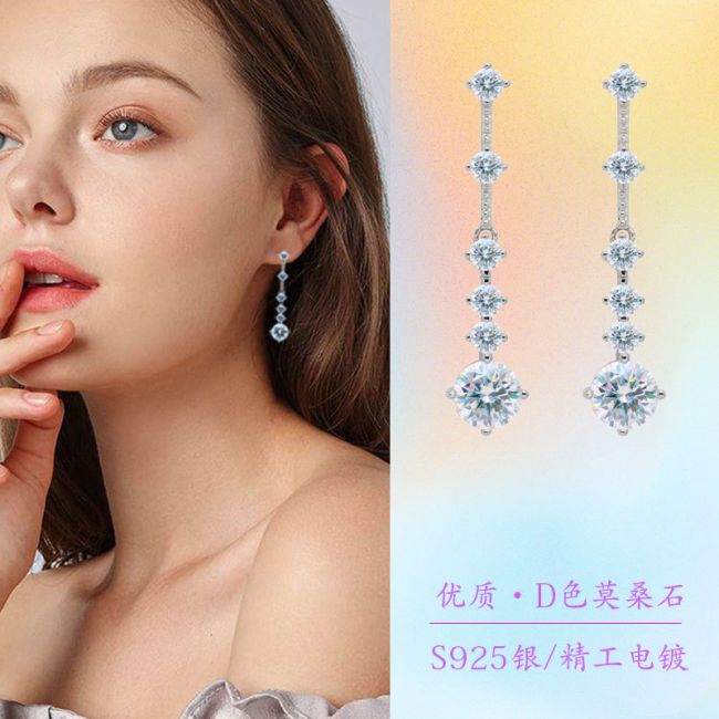 Earrings - Elegant Long Tassel Drop Earrings with Moissanite Stones in Sterling Silver