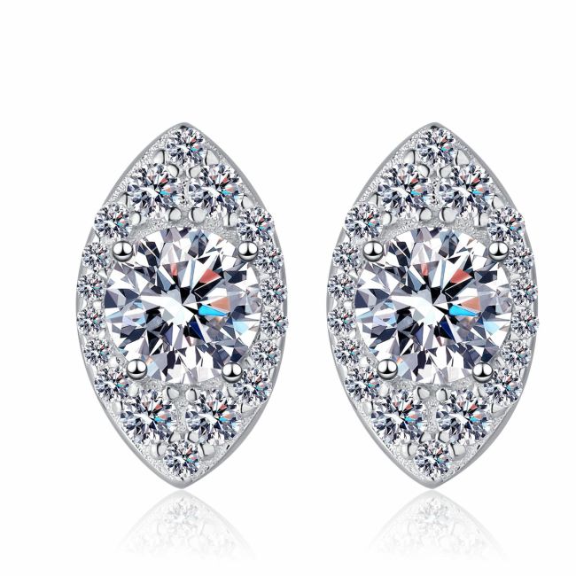 Earrings Featuring 925 Sterling Silver Plated with PT950 and Oval Moissanite with 5mm Zircon Accents