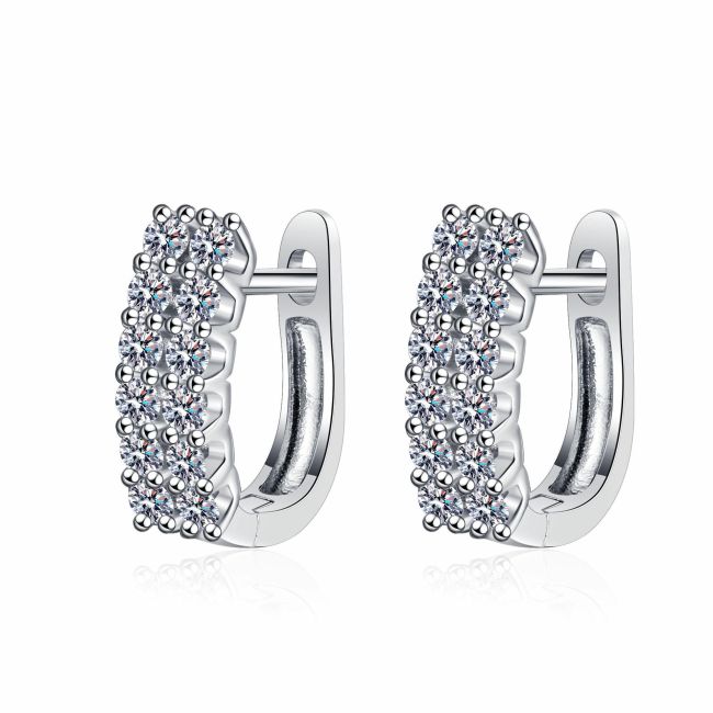 Earrings Featuring Double Row Moissanite Studs in 925 Sterling Silver with Geometric Design for Everyday Wear