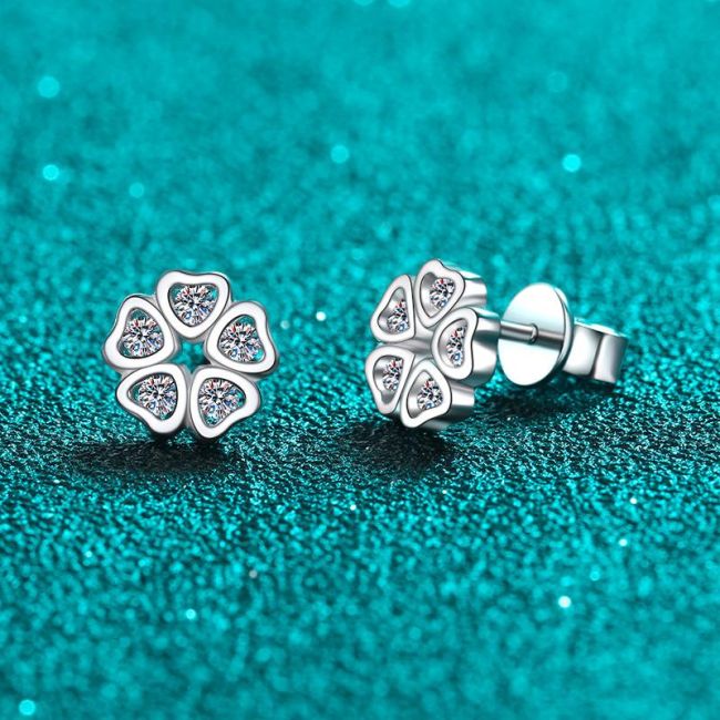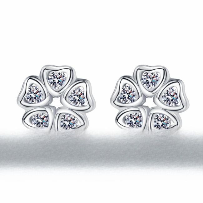 Earrings Featuring Heart-Shaped Petal Design with 0.25 Carat Moissanite in Sterling Silver for a Sweet and Fresh Style
