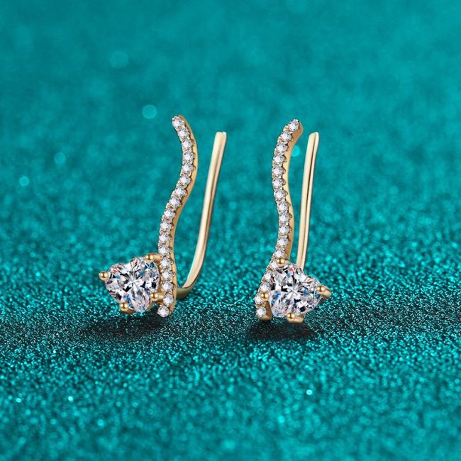Earrings Featuring S925 Sterling Silver with Champagne Gold Plated Linear Heart Design and 1 Carat Total Moissanite Accents
