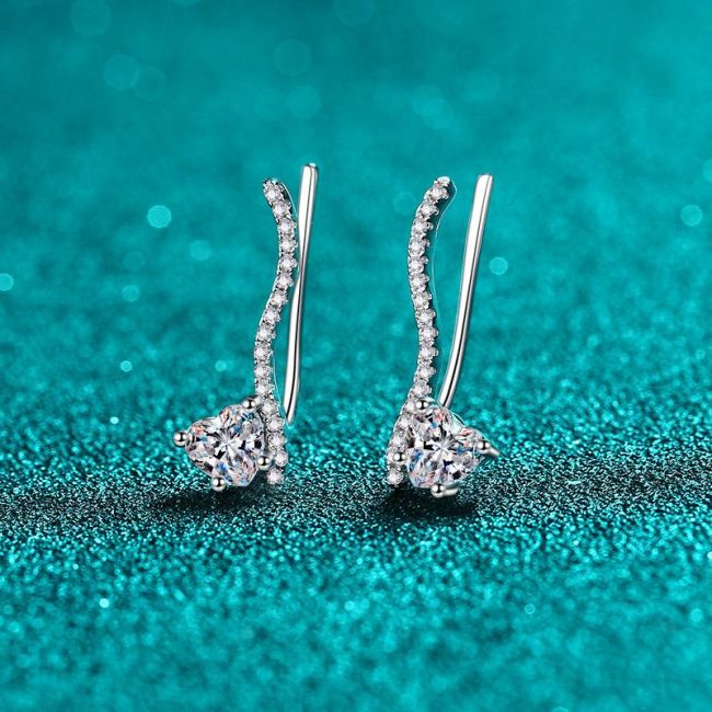 Earrings with Linear Design Featuring 1 Carat Moissanite and 5mm Zircon Stones in Sterling Silver