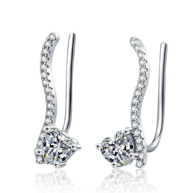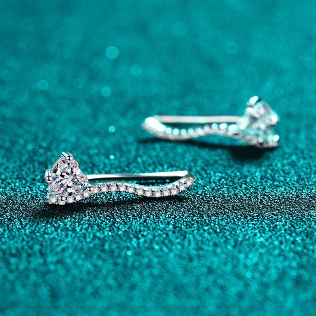 Earrings Featuring S925 Sterling Silver with Linear Heart Design and Moissanite Accents