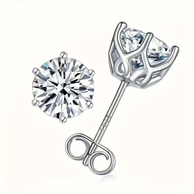 Earrings - Four Prong Moissanite Stud Earrings in 925 Sterling Silver Hypoallergenic Fashion Jewelry