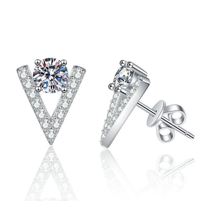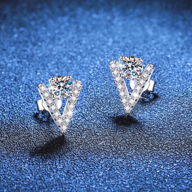 Earrings - Geometric V-Shaped Sterling Silver Stud Earrings with Moissanite Stones
