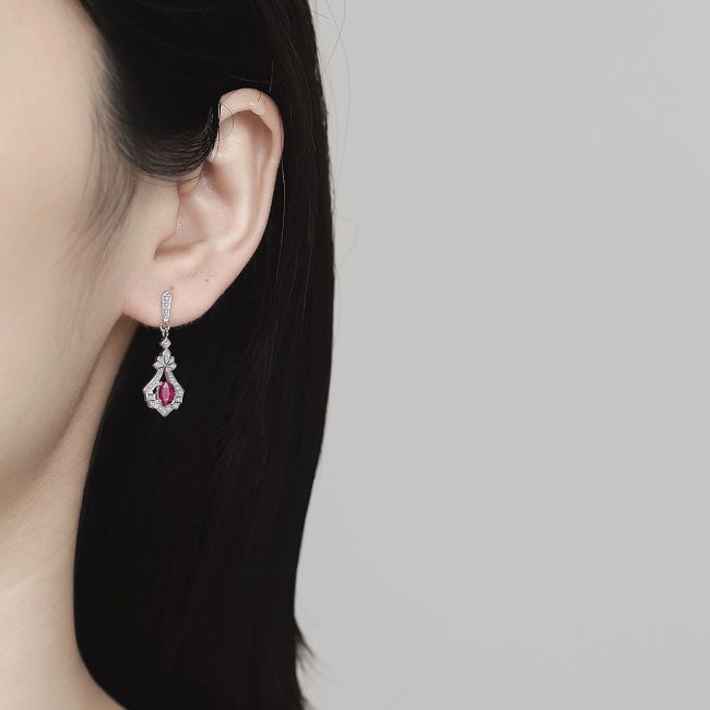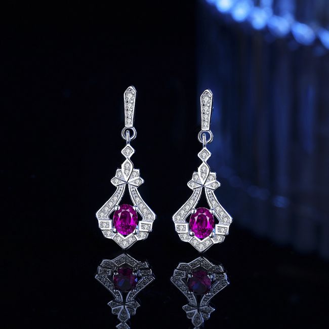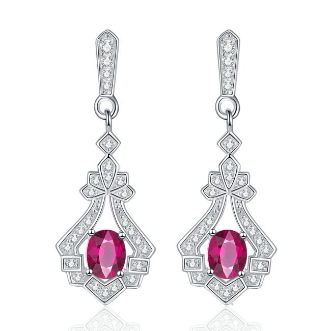 Earrings Luxury Pigeon Blood Red Ruby Gemstone Drop Earrings 925 Sterling Silver Gold Plated