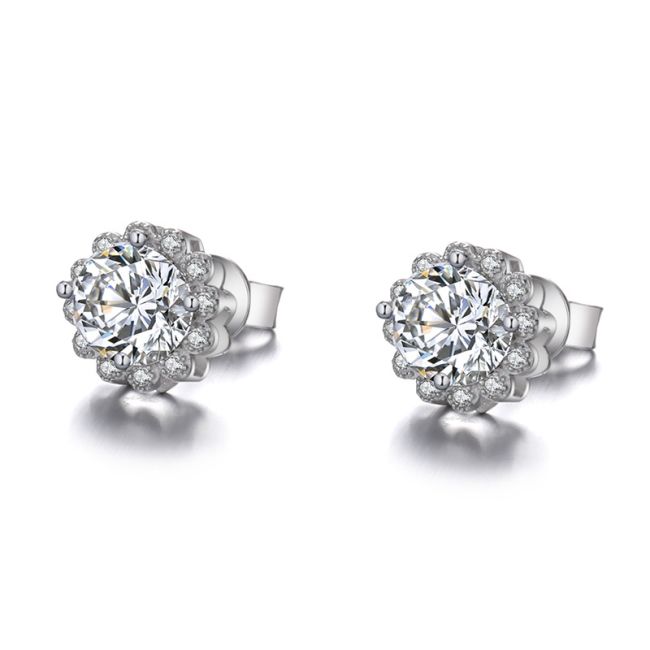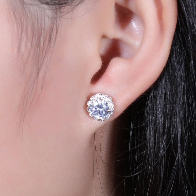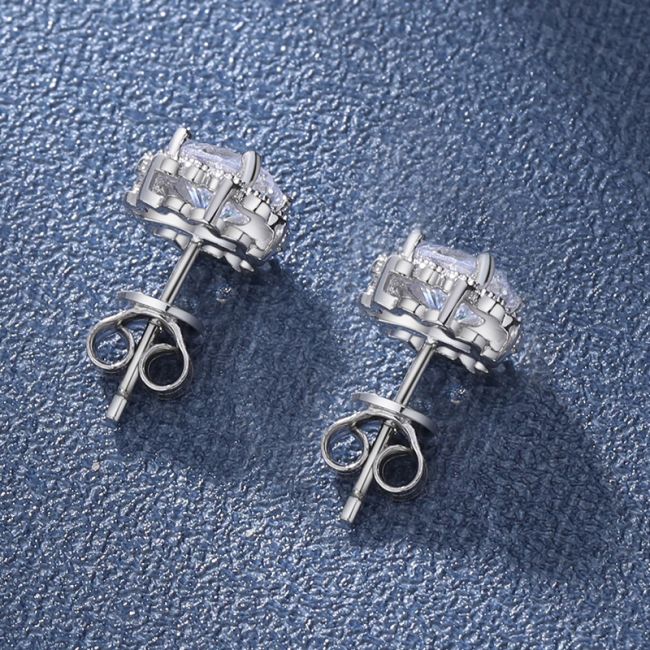 Earrings - Moissanite Flower Bud Stud Earrings in S925 Sterling Silver with Micro Pave Setting