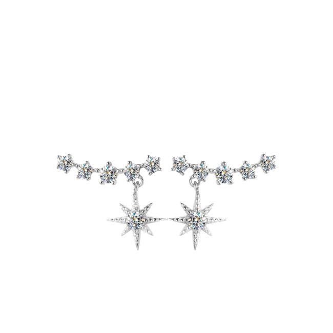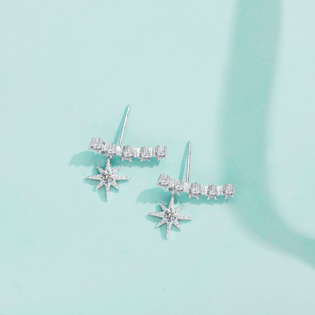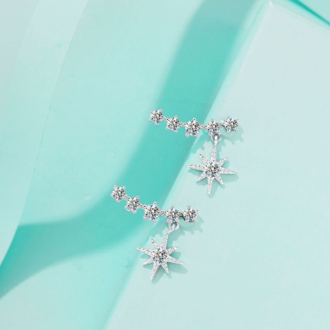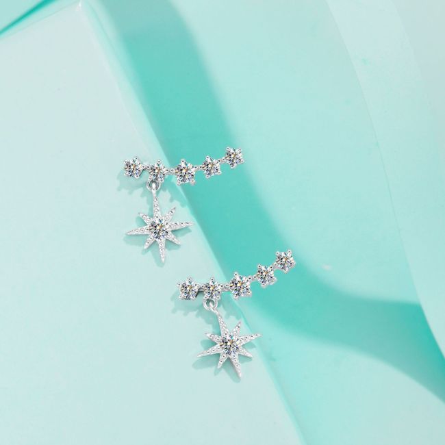 Earrings - S925 Sterling Silver Eight-Point Star Moissanite Stud Earrings Classic Minimalist Fashion