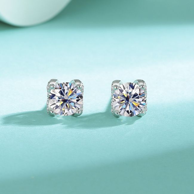 Earrings - Sterling Silver S925 Moissanite Butterfly Stud Earrings Elegant Fashion Jewelry