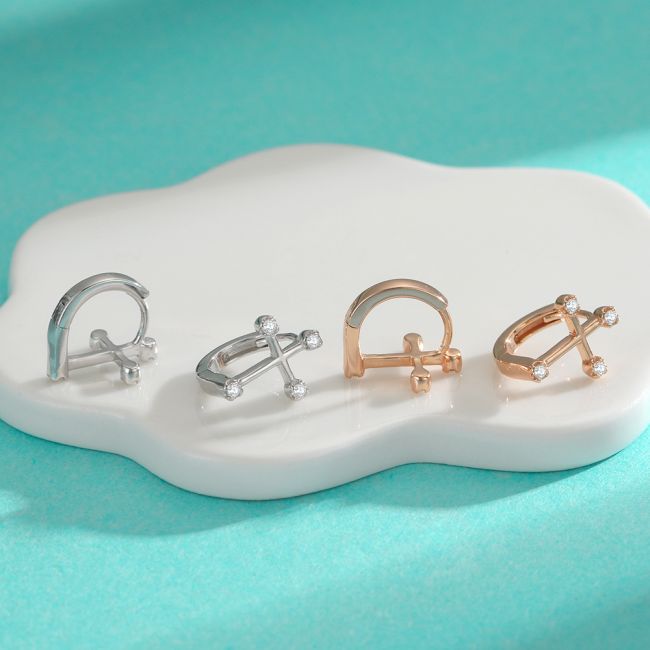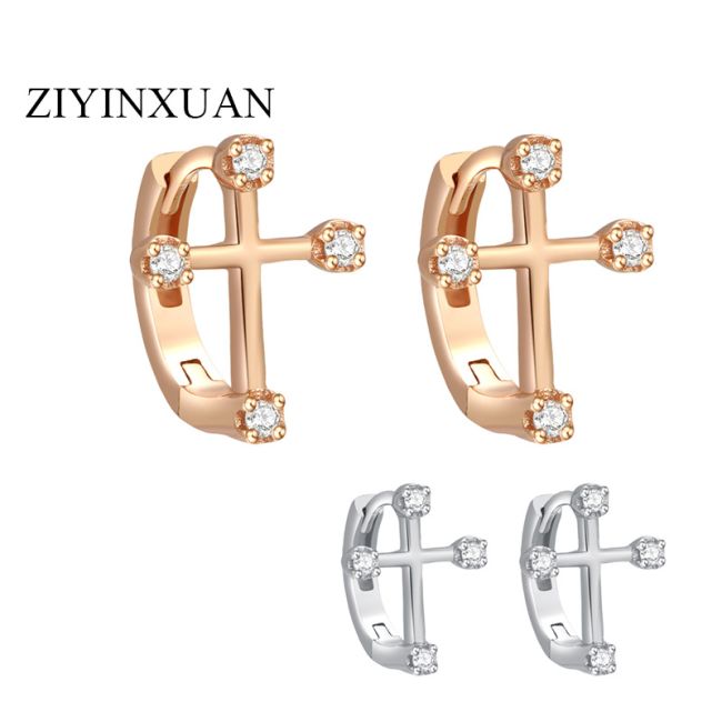 Earrings - S925 Sterling Silver Moissanite Cross Huggie Hoop Earrings with Platinum Plating