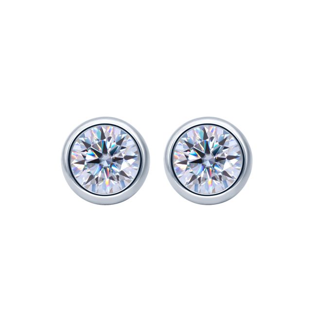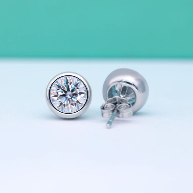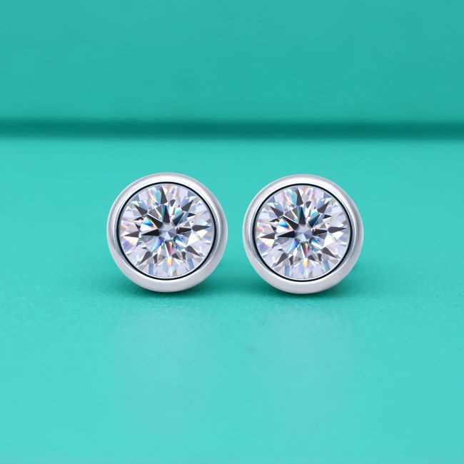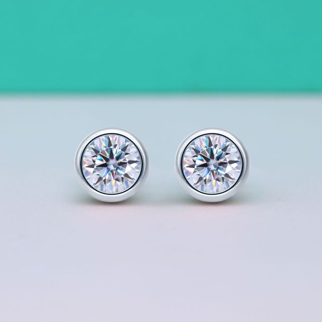 Earrings - S925 Sterling Silver Moissanite Geometric Bubble Stud Earrings with Bezel Setting