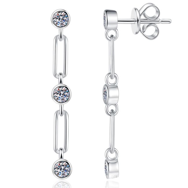 Earrings Sterling Silver Chain Link Drop Earrings with Moissanite Stones
