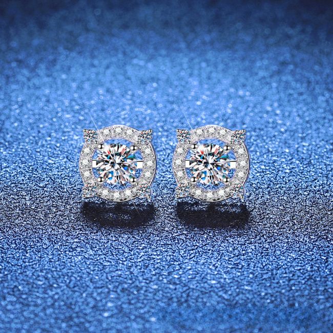 Earrings Sterling Silver Crown Halo Moissanite Stud Earrings with Convertible Two-Way Wear Design