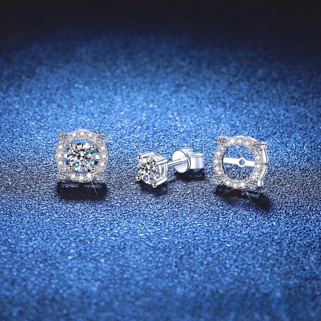 Earrings Sterling Silver Crown Halo Moissanite Stud Earrings with Convertible Two-Way Wear Design