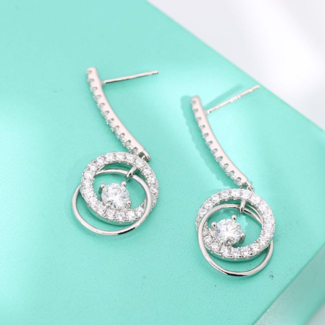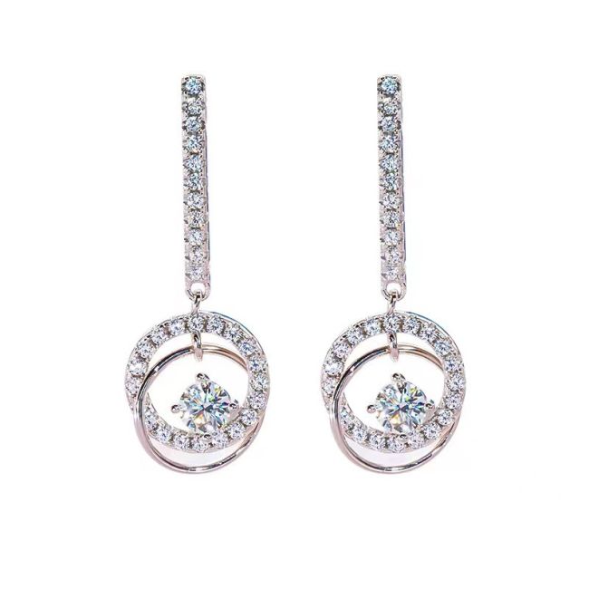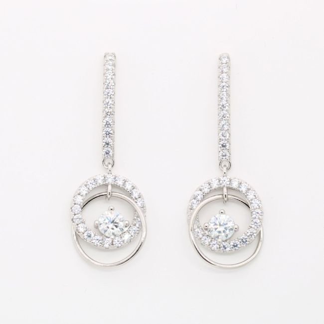 Earrings - Sterling Silver Dancing Heart Double Circle Drop Earrings with Moissanite