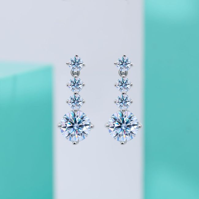Earrings Sterling Silver Dancing Heart Moissanite Drop Earrings for Women