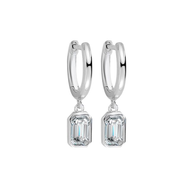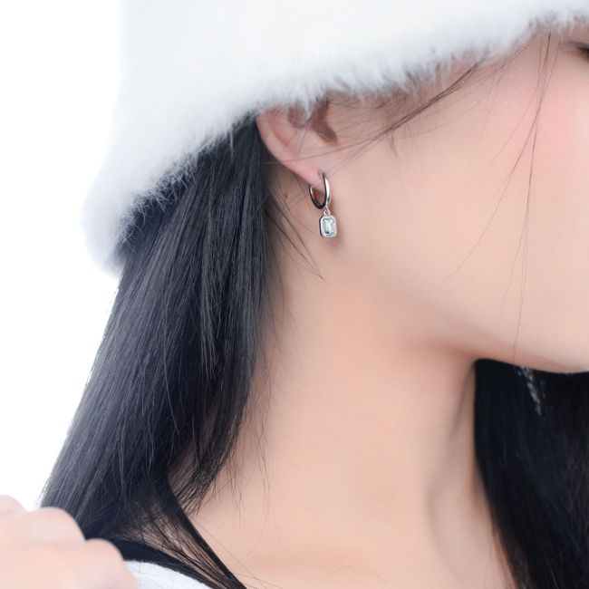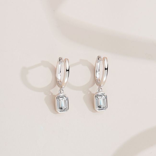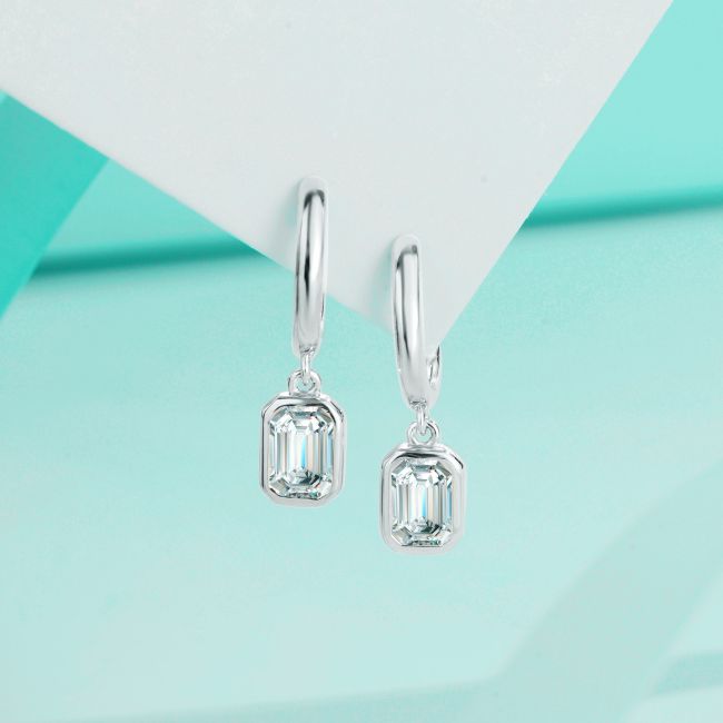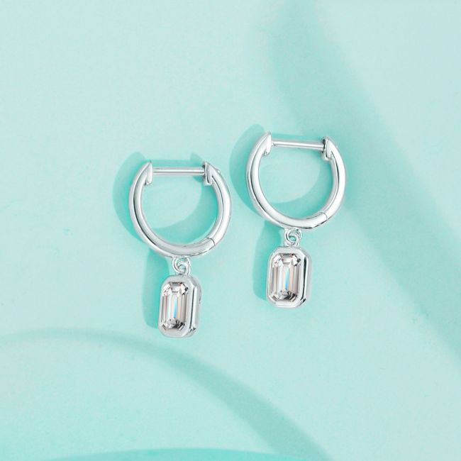 Earrings Sterling Silver Emerald Cut Moissanite Rectangular Drop Hook Earrings