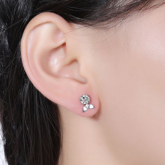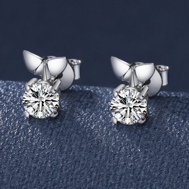 Earrings Sterling Silver Fish Stud Earrings with Moissanite or Cubic Zirconia Stones