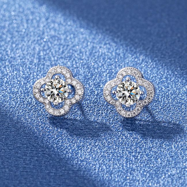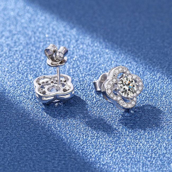 Earrings - Sterling Silver Four Leaf Clover Moissanite Stud Earrings 0.5ct