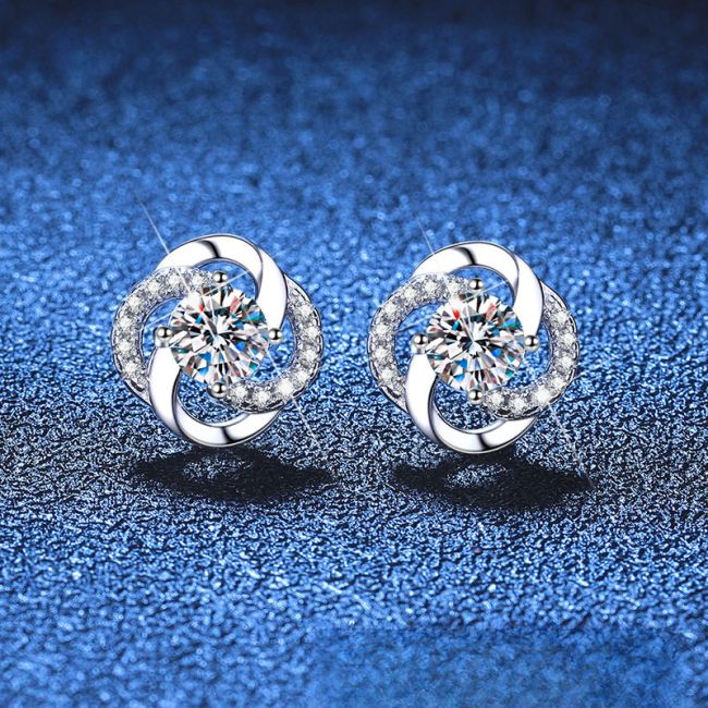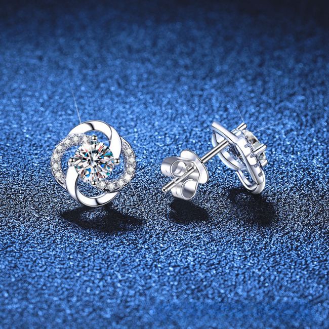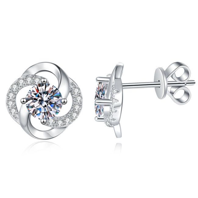 Earrings Sterling Silver Four Leaf Clover Stud Earrings with Moissanite Center Stone