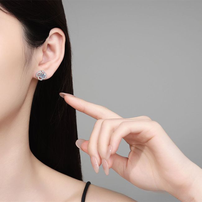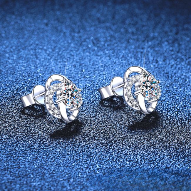 - Center Stone: Moissanite gemstone, 0.5 carat per earring (1.0 total carat weight)