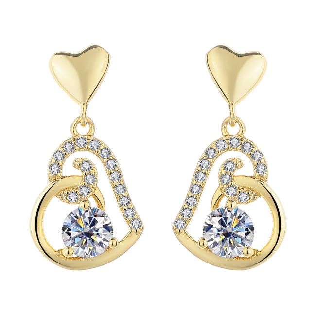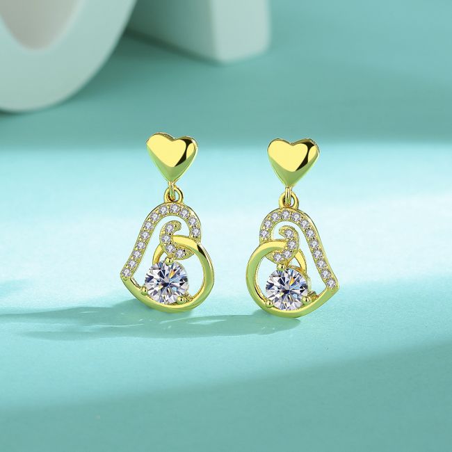 Earrings - Sterling Silver Heart Moissanite Stud Earrings Elegant Drop Dangle Jewelry
