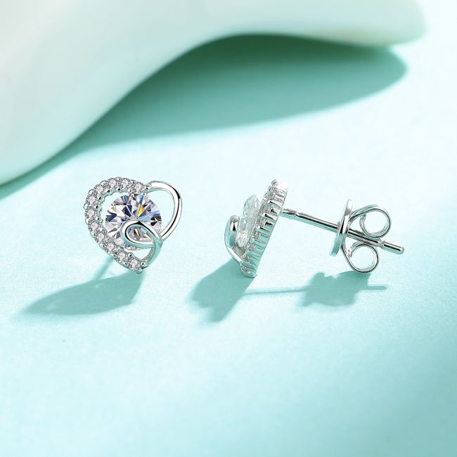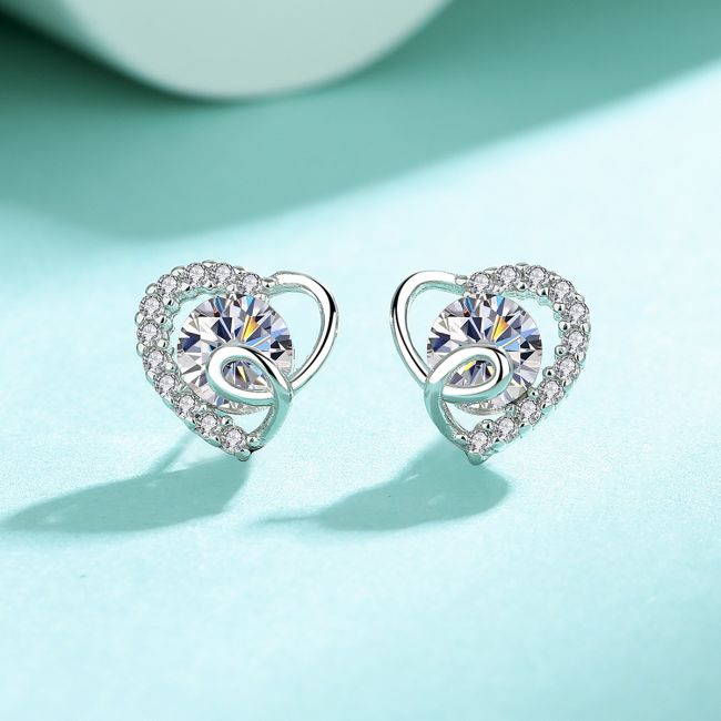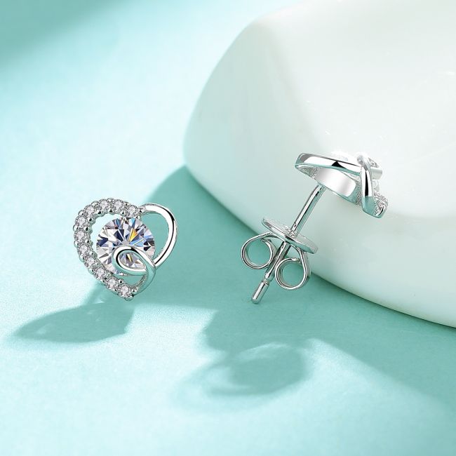 Earrings Sterling Silver Heart Moissanite Stud Earrings Minimalist Fashion Zirconia Jewelry