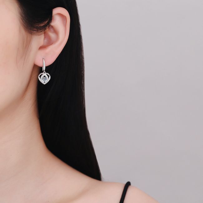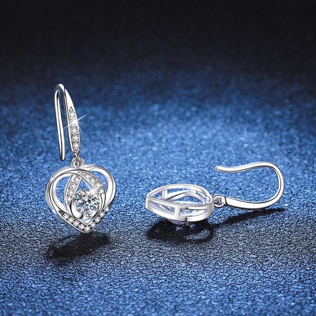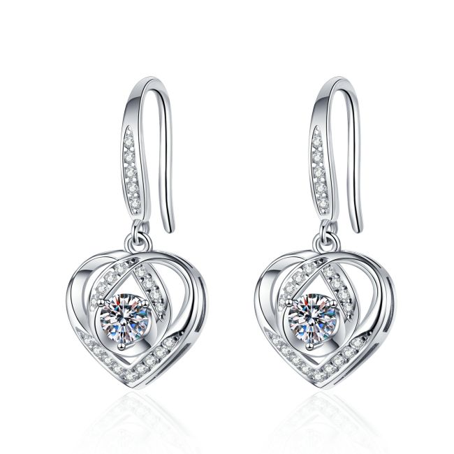 Earrings Sterling Silver Heart-Shaped Drop Earrings with Moissanite Stone Elegant Hook Design