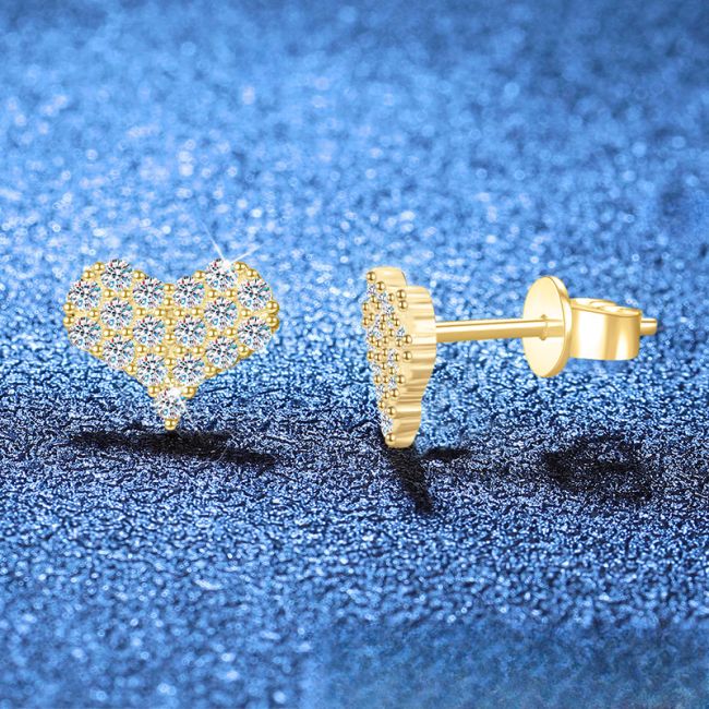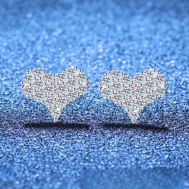 Earrings Sterling Silver Heart Shaped Moissanite Stud Earrings with Full Pave Setting