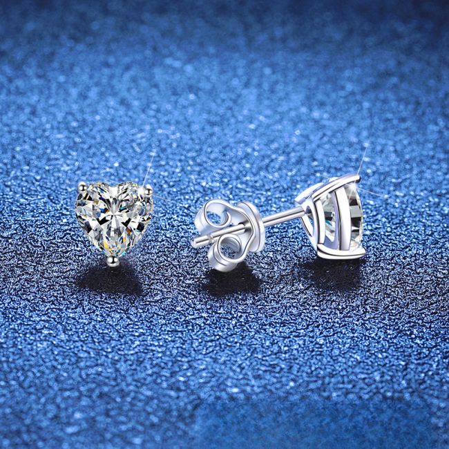 Earrings Sterling Silver Heart-Shaped Moissanite Stud Earrings with Platinum Plating
