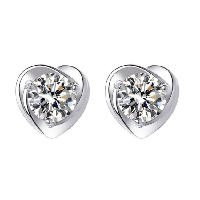 Earrings - Sterling Silver Heart Stud Earrings with Moissanite Stones for Women