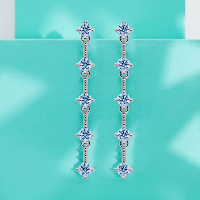 Earrings - Sterling Silver Long Tassel Drop Earrings with Moissanite Stone for Women