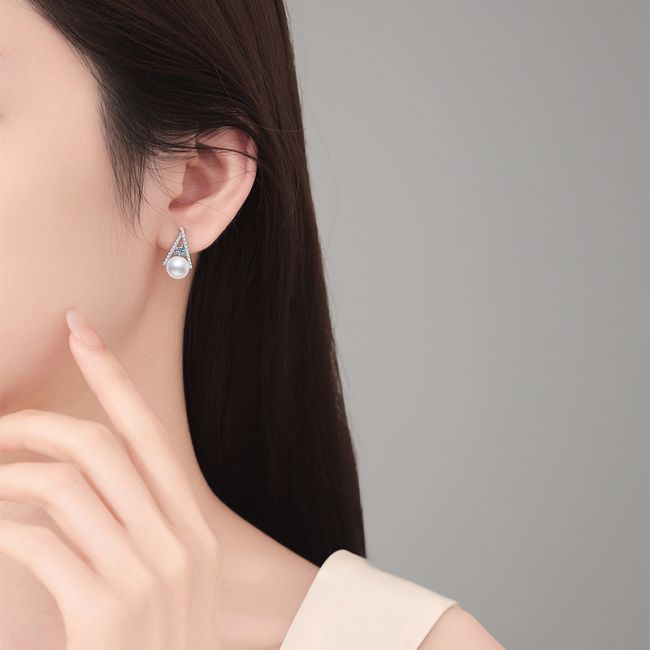 - Pearl Details: Genuine freshwater pearls with natural iridescent luster suspended below the triangle design