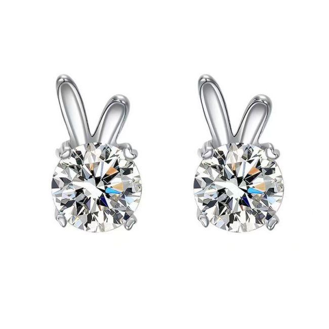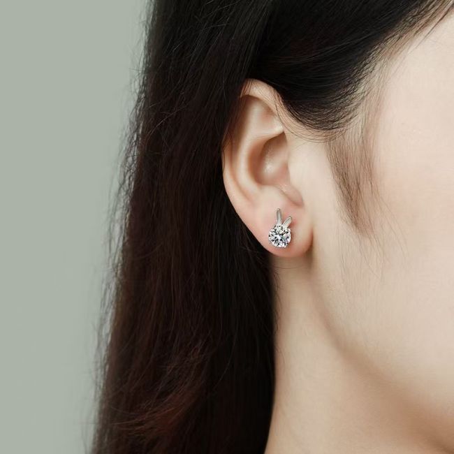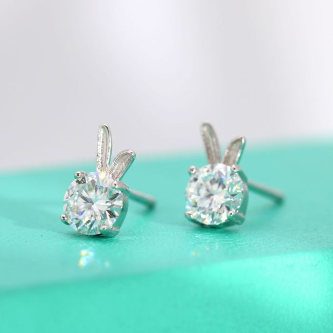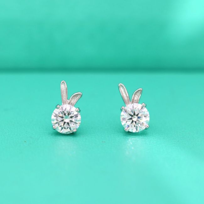 Earrings - Sterling Silver Moissanite Bunny Rabbit Stud Earrings Minimalist Design