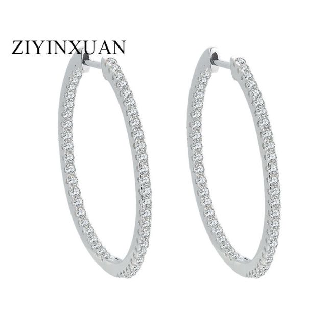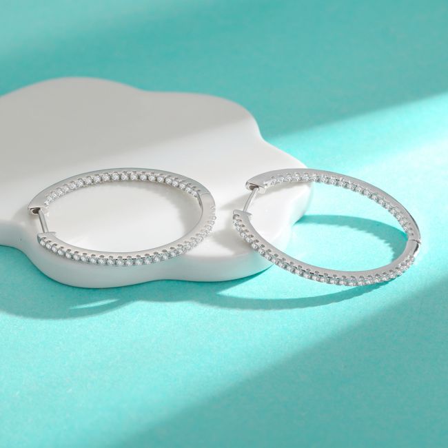 Earrings - Sterling Silver Moissanite Circle Hoop Earrings Minimalist Elegant Design