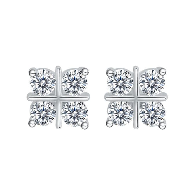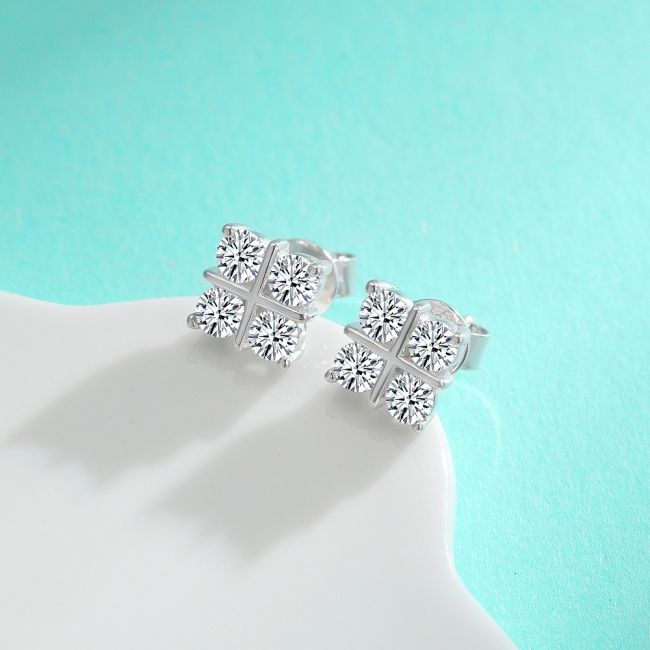 Earrings - Sterling Silver Moissanite Cross Cube Stud Earrings Minimalist Fashion Jewelry