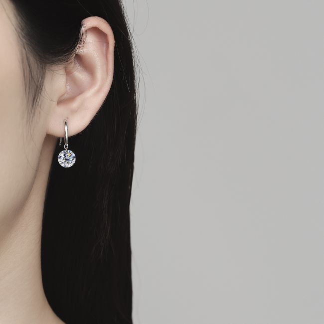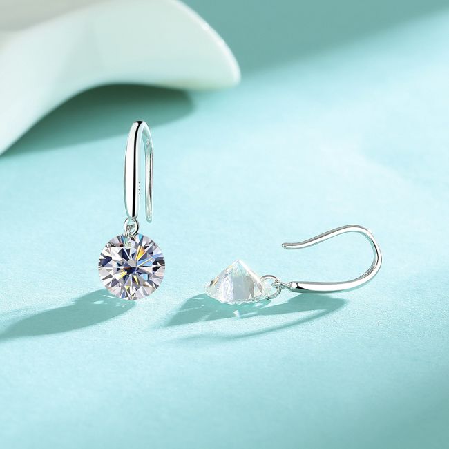 Earrings - Sterling Silver Moissanite Drop Hook Earrings Minimalist Elegant Versatile Jewelry