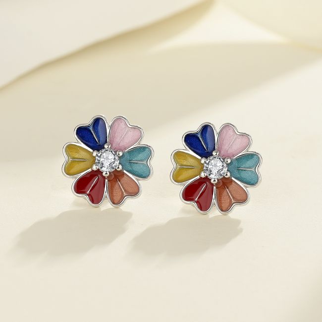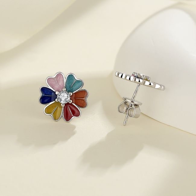 Earrings - Sterling Silver Moissanite Flower Stud Earrings with Colorful Gemstone Accents