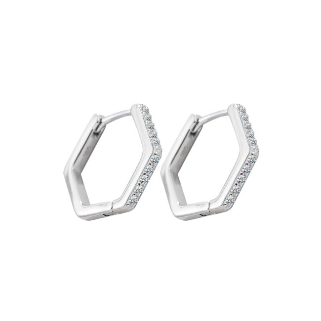 Earrings - Sterling Silver Moissanite Hoop Earrings with Pave Setting