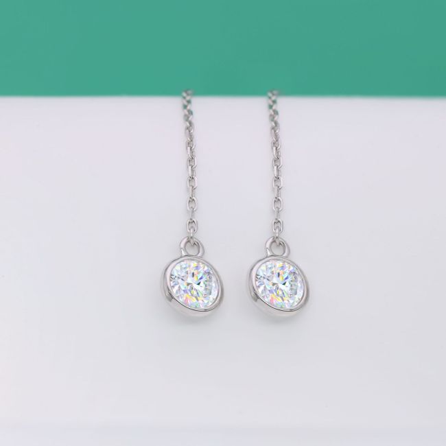 Earrings - Sterling Silver Moissanite Long Tassel Drop Earrings with Bubble Design