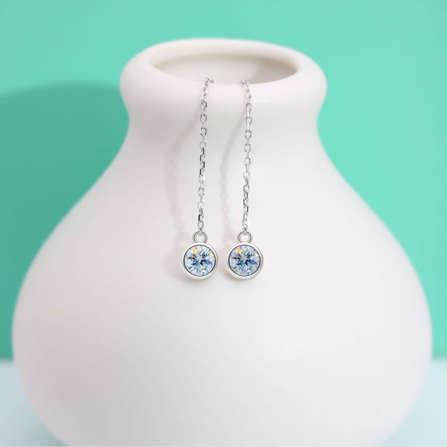 Earrings Sterling Silver Round Moissanite Drop Earrings with 4-Prong Setting