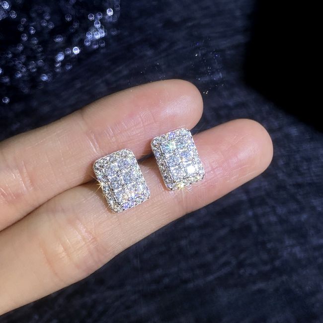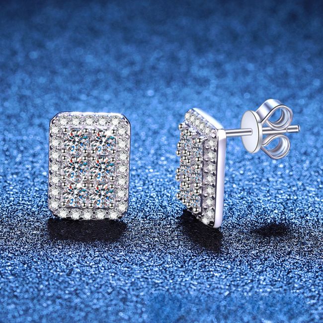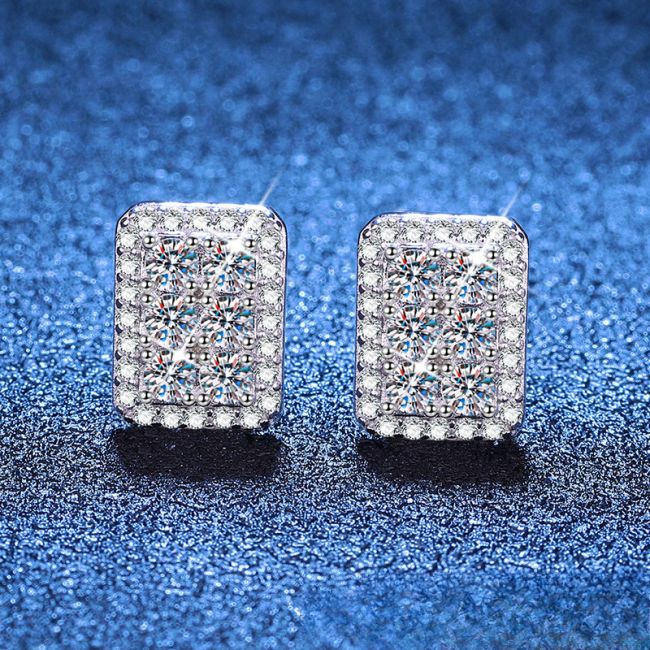 Earrings - Sterling Silver Moissanite Rectangular Stud Earrings with Full Pave Setting