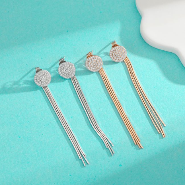 Earrings - S925 Sterling Silver Moissanite Diamond Tassel Drop Studs Convertible Two-Way Wear