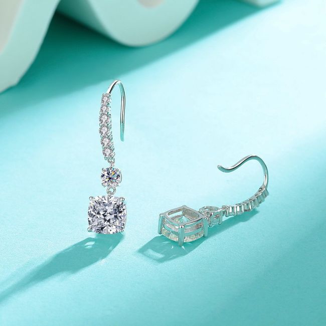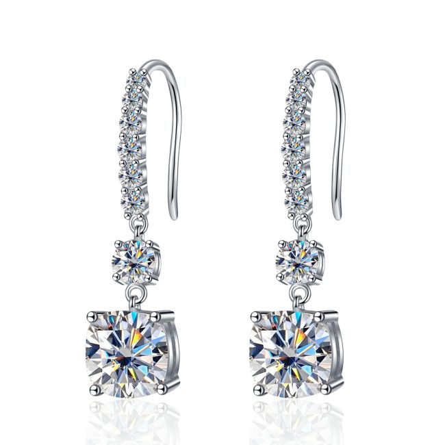 Earrings - Sterling Silver Moissanite Drop Hook Earrings Minimalist Elegant Versatile Jewelry