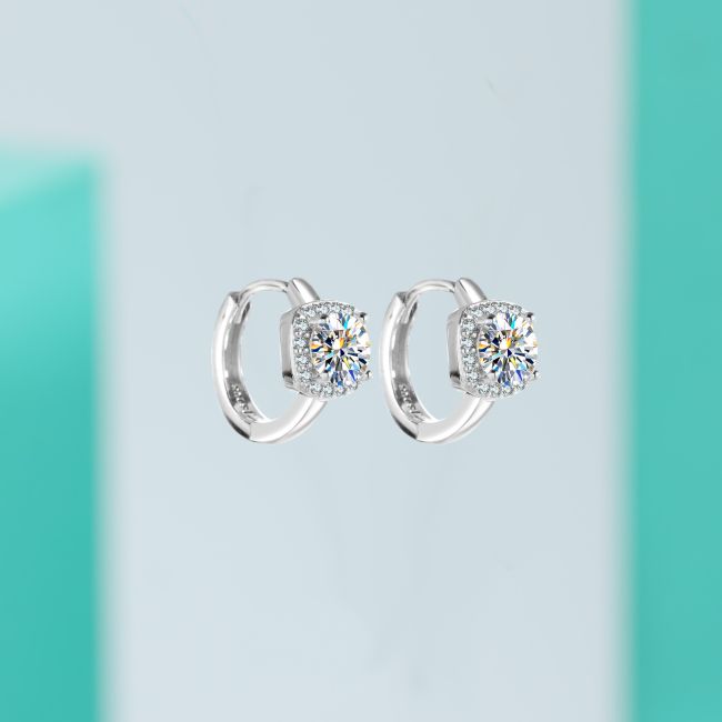 Earrings - Sterling Silver Moissanite Hoop Earrings with Pave Setting