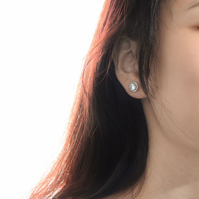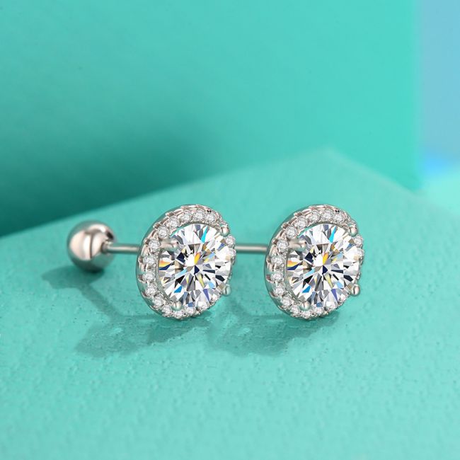 Earrings - Sterling Silver Moissanite Stud Earrings Minimalist Round Halo Design Versatile Fashion Jewelry